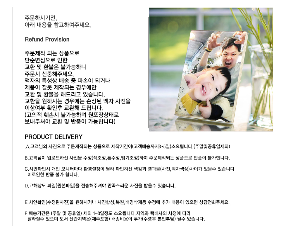 액자 상품은 주문 제작이므로 반품할수 없으니 신중한 구매 부탁합니다.